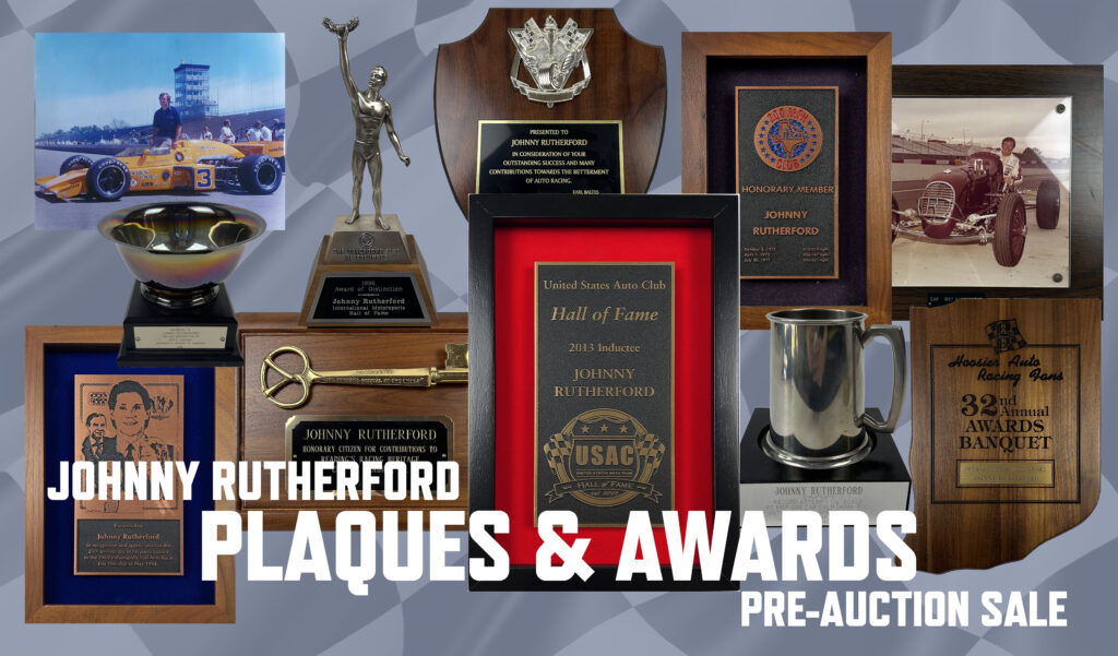 Available today are the Plaques, Awards and Photos from the Johnny Rutherford Collection. This Pre-Auction sale is the first time these historic items have been offered for sale. These are direct from Rutherford’s trophy case, and each will include a signed Certificate of Authenticity. Rutherford is giving fans worldwide the opportunity to own these special items he earned through his illustrious career. Click HERE to start shopping. There are over 100 items to choose from.